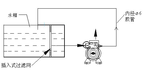 三、该泵为精密高扬程旋涡泵,要求水质洁净,坚硬的固体粒子会加快磨损,缩短泵的使用寿命。线头等物质吸入后甚至会卡死水泵,所以建议在水箱设置80目,面积不少于100CM2插入式过滤网。(如图)